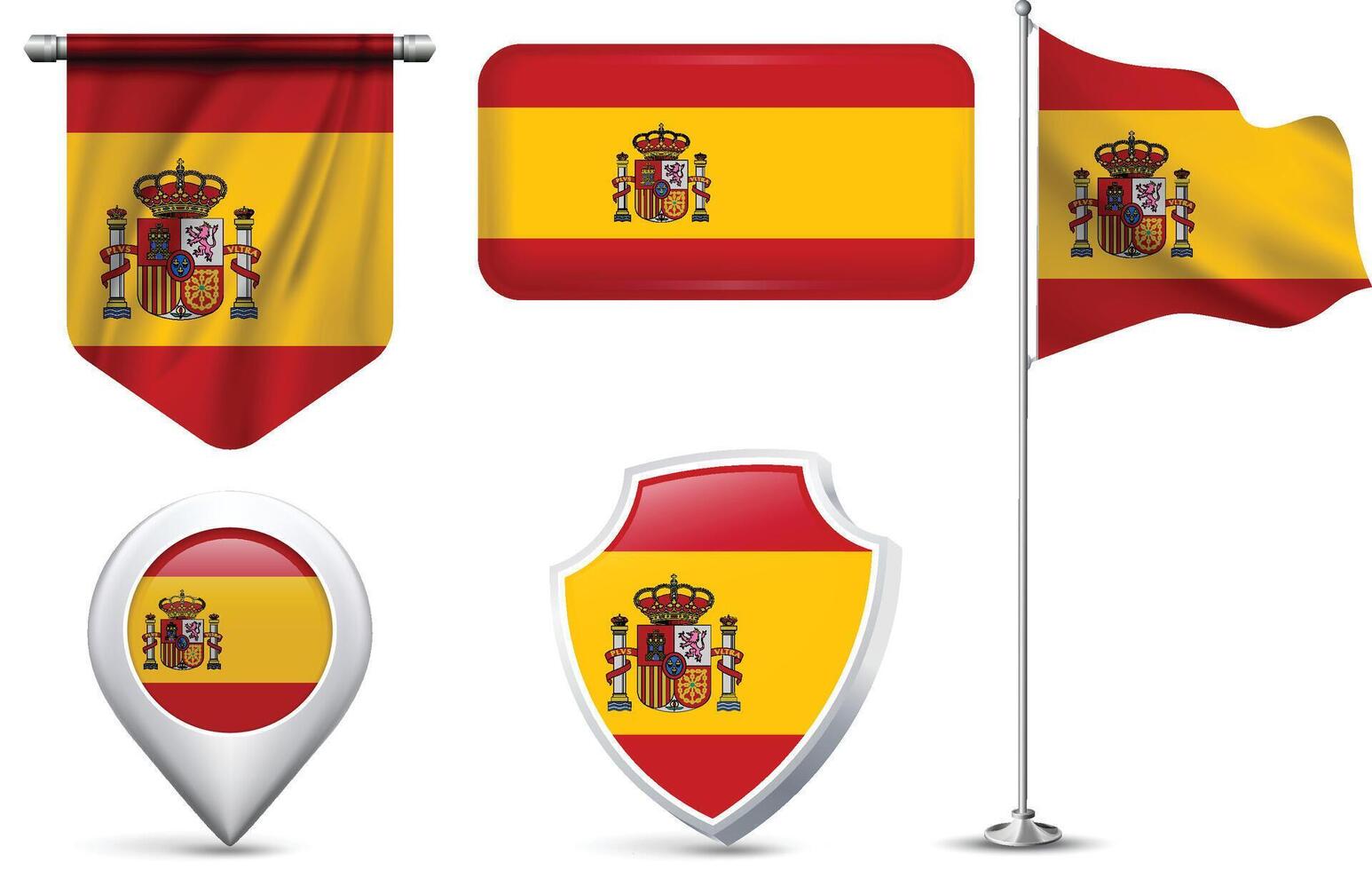 Set of Spanish Flags in Different Shapes and Styles Free Vector