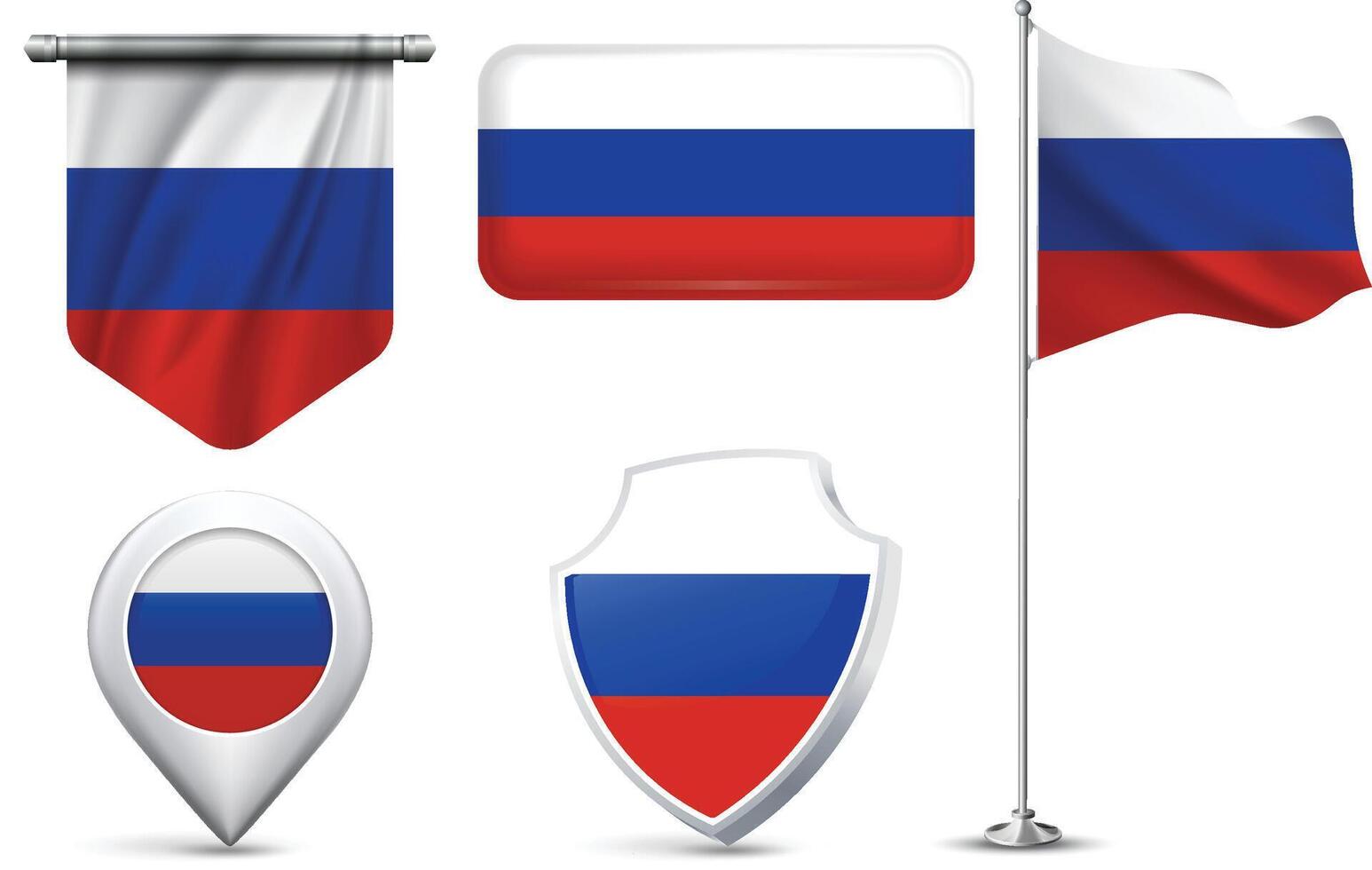 Set of Russian Flags in Different Shapes and Styles Free Vector