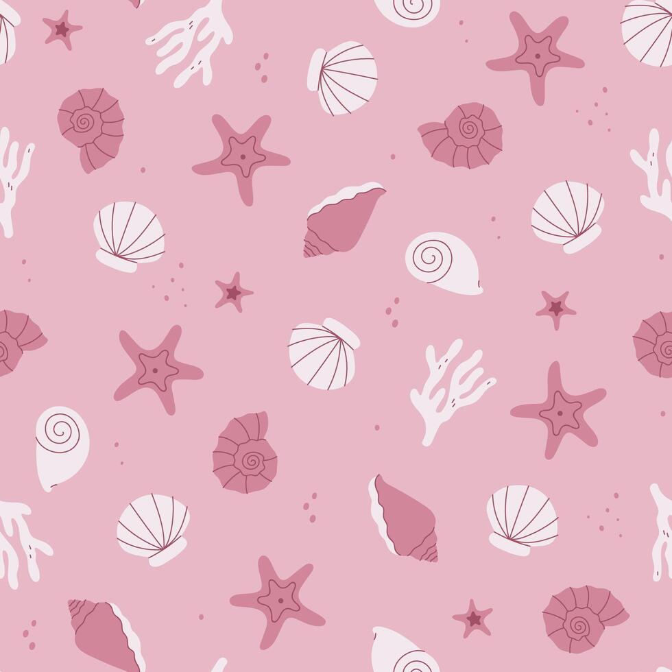 Simple seamless pattern with seashells and starfish in pink tones. graphics. Pro Vector