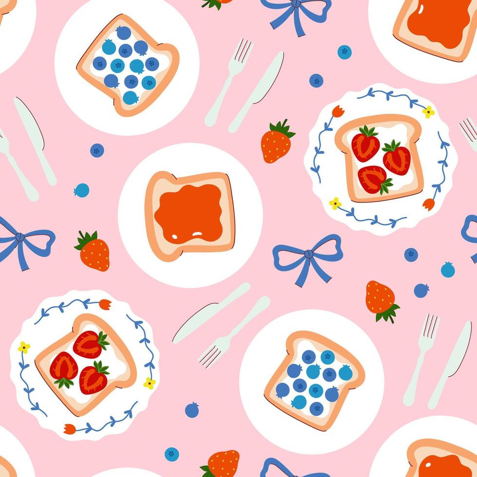 Seamless pattern with toasts with strawberries and blueberries. graphics. Pro Vector