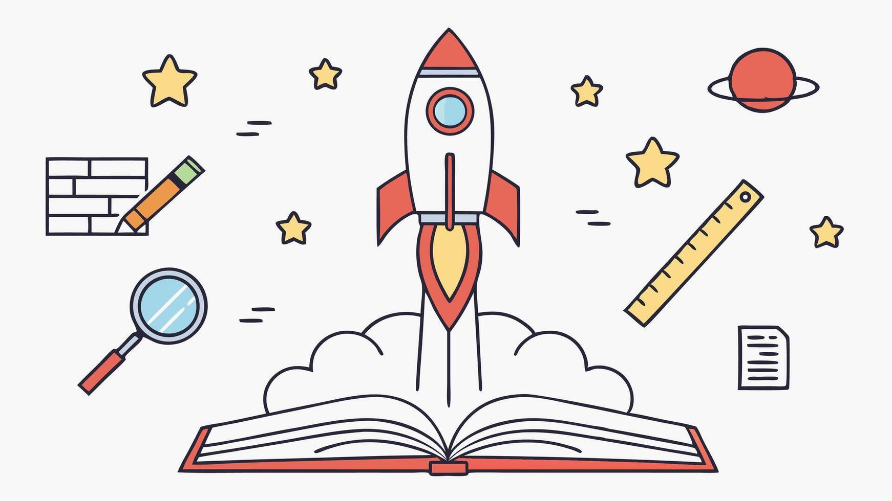 Education rocket launch illustration for learning and growth concept design element Pro Vector