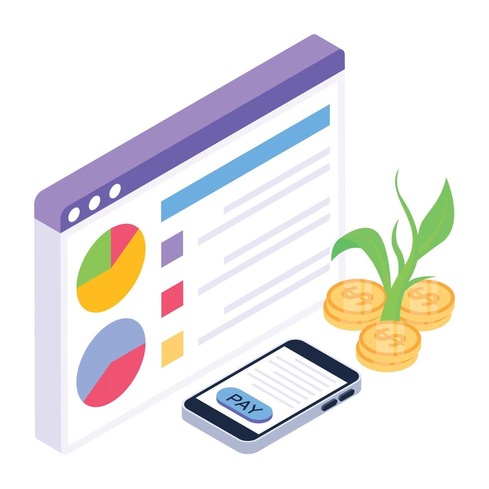 Online data infographic icon, isometric design of web analytics Pro Vector