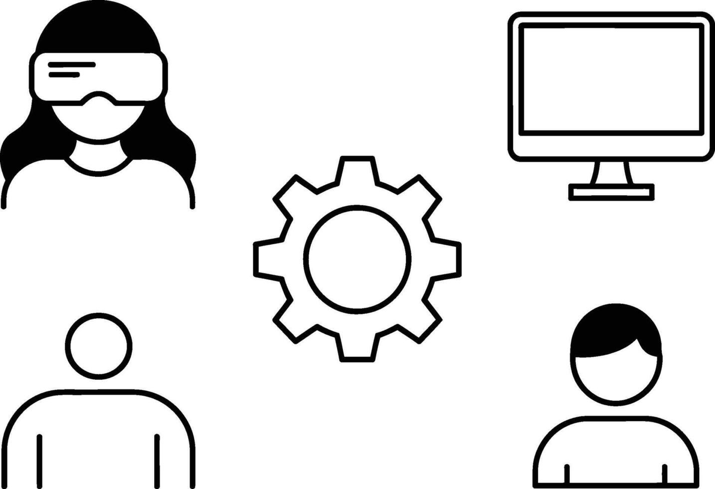Technological innovation and connectivity depicted through icons representing digital world and interaction Pro Vector
