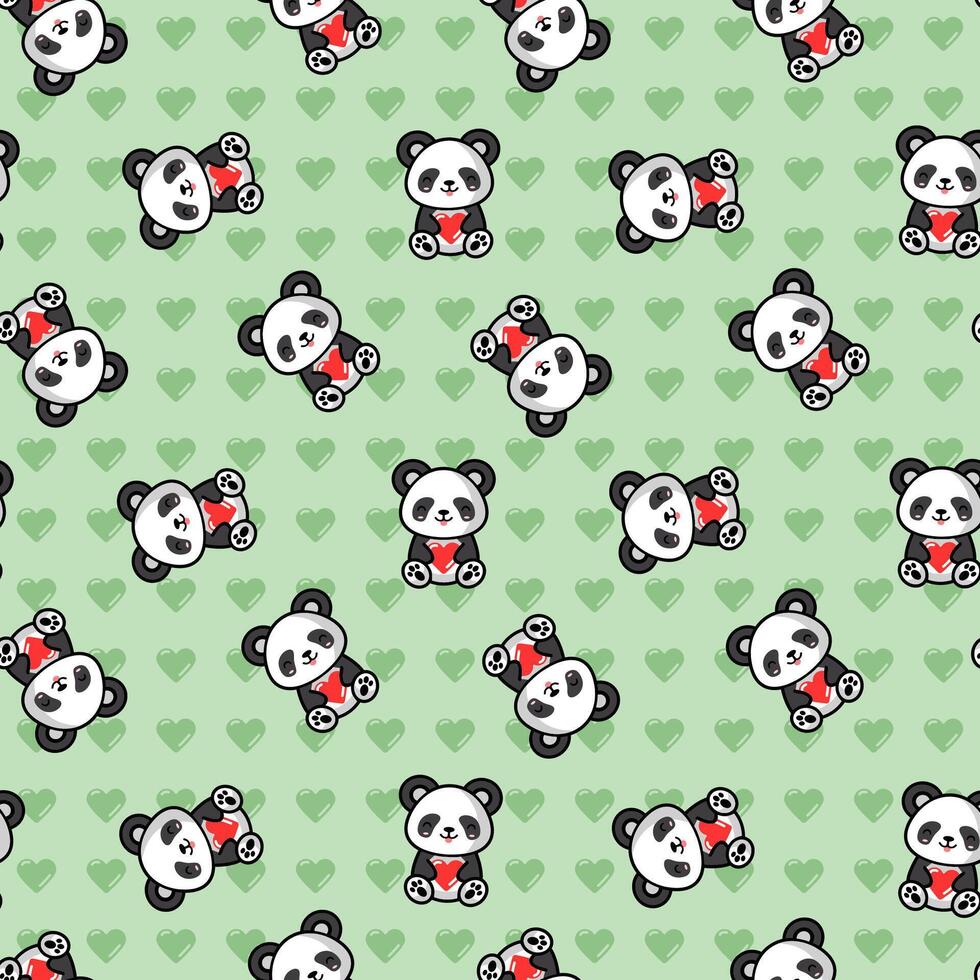 cute pandas with tiny hearts seamless pattern Pro Vector