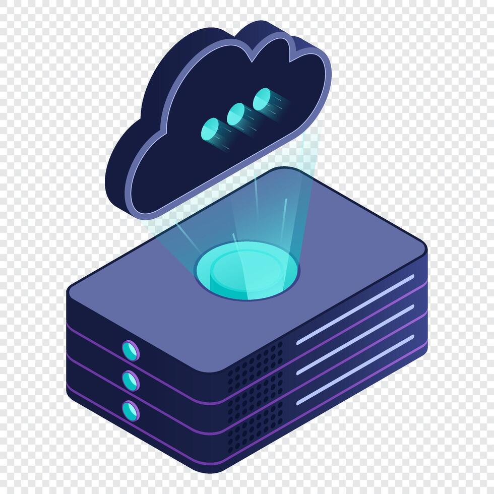 Isometric cloud database. Cloud computing and file cloud storage. Modern technology. Technology Pro Vector