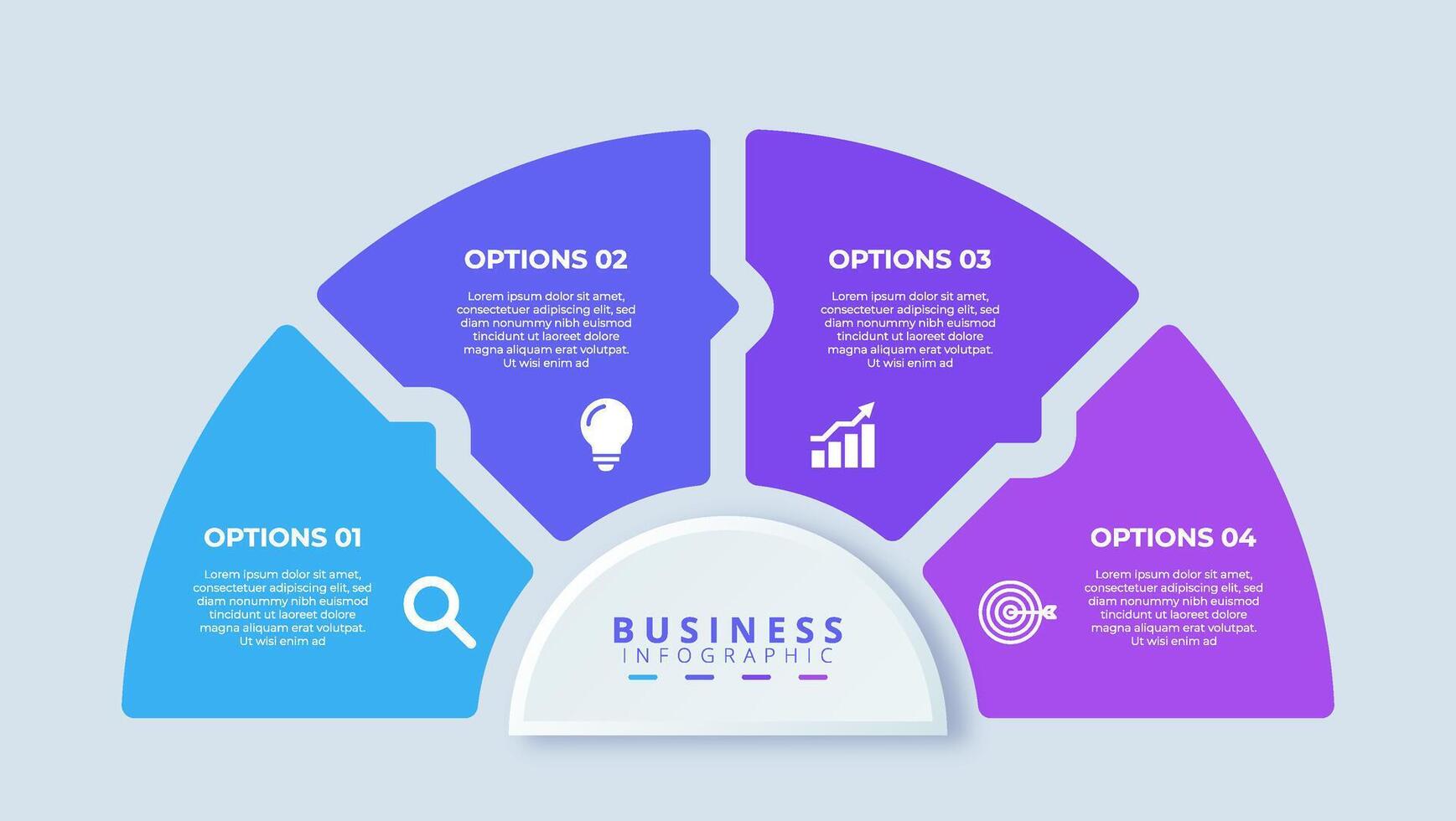 Infographic template featuring 4 steps with icons, designed for business concepts. Ideal for presentations, banners, workflow layout Pro Vector