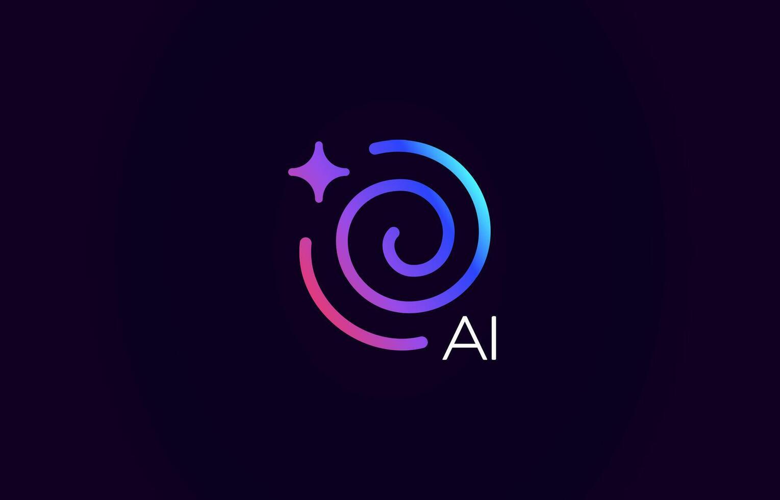 AI logo with glowing spiral and glare star element, abstract gradient lines funnel icon design for innovative tech platforms, creative AI tools, digital branding. illustration. Pro Vector