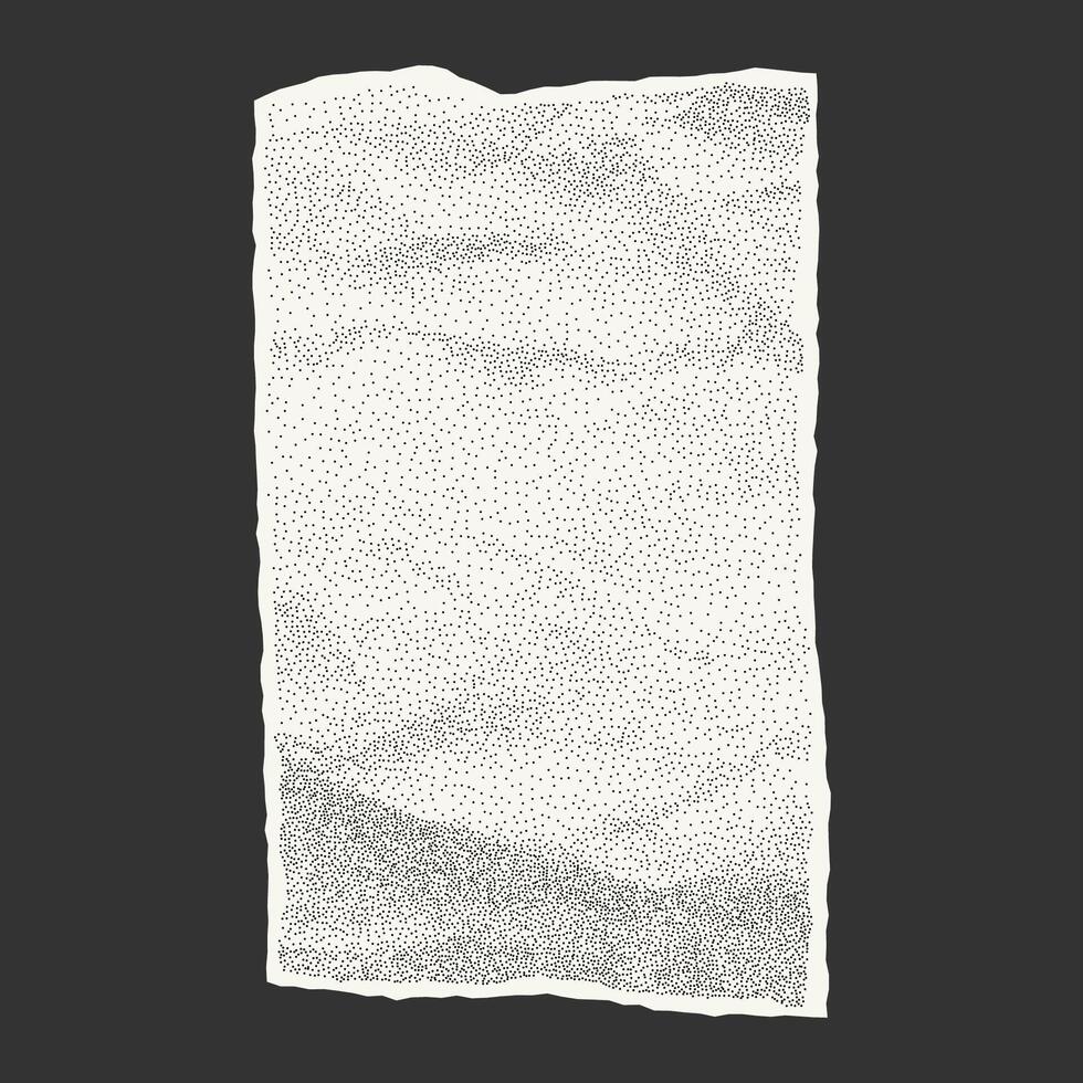 Torn crumpled paper with uneven rectangular shape. Element with jagged torn edges, gritty dotted texture on notebook sheet, halftone effect. Pro Vector