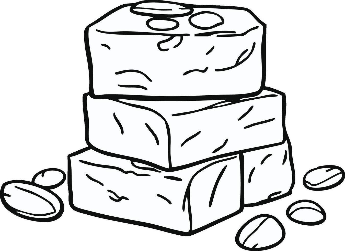 Stack Of Fudge Pieces With Nuts Simple Line Art Dessert Isolated On A White Background Pro Vector