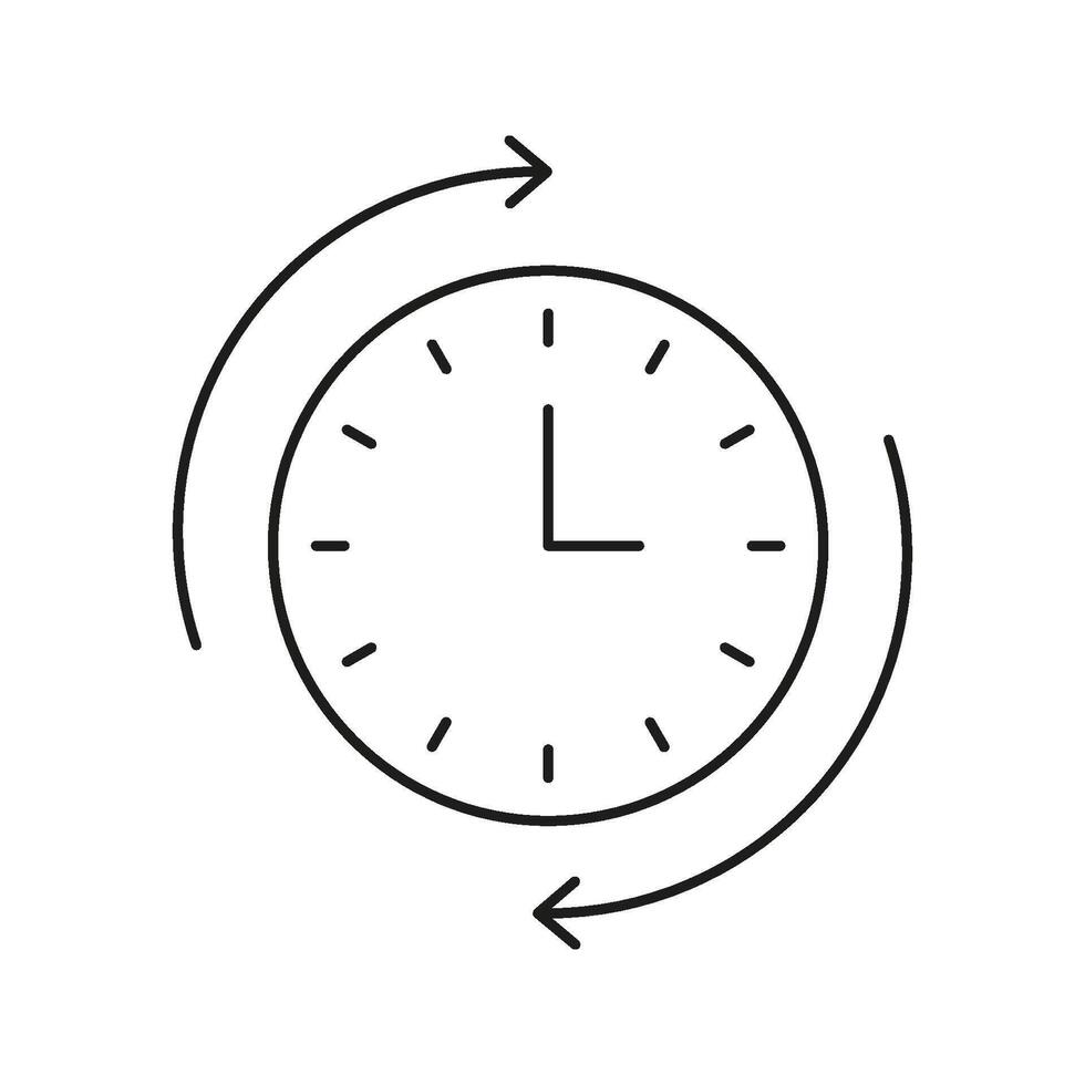 Clock With Arrows Line Icon. Time Management, Scheduling, And Cycle Tracking Outline Symbol. Efficient Planning And Routine Optimization. Editable Stroke. Isolated Illustration Pro Vector