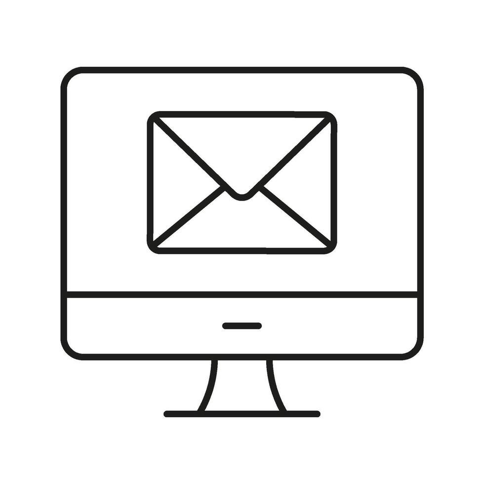 Computer With Email Envelope Line Icon. Digital Communication And Online Messaging Outline Symbol. Email Notification And Internet Correspondence. Editable Stroke. Isolated Illustration Pro Vector