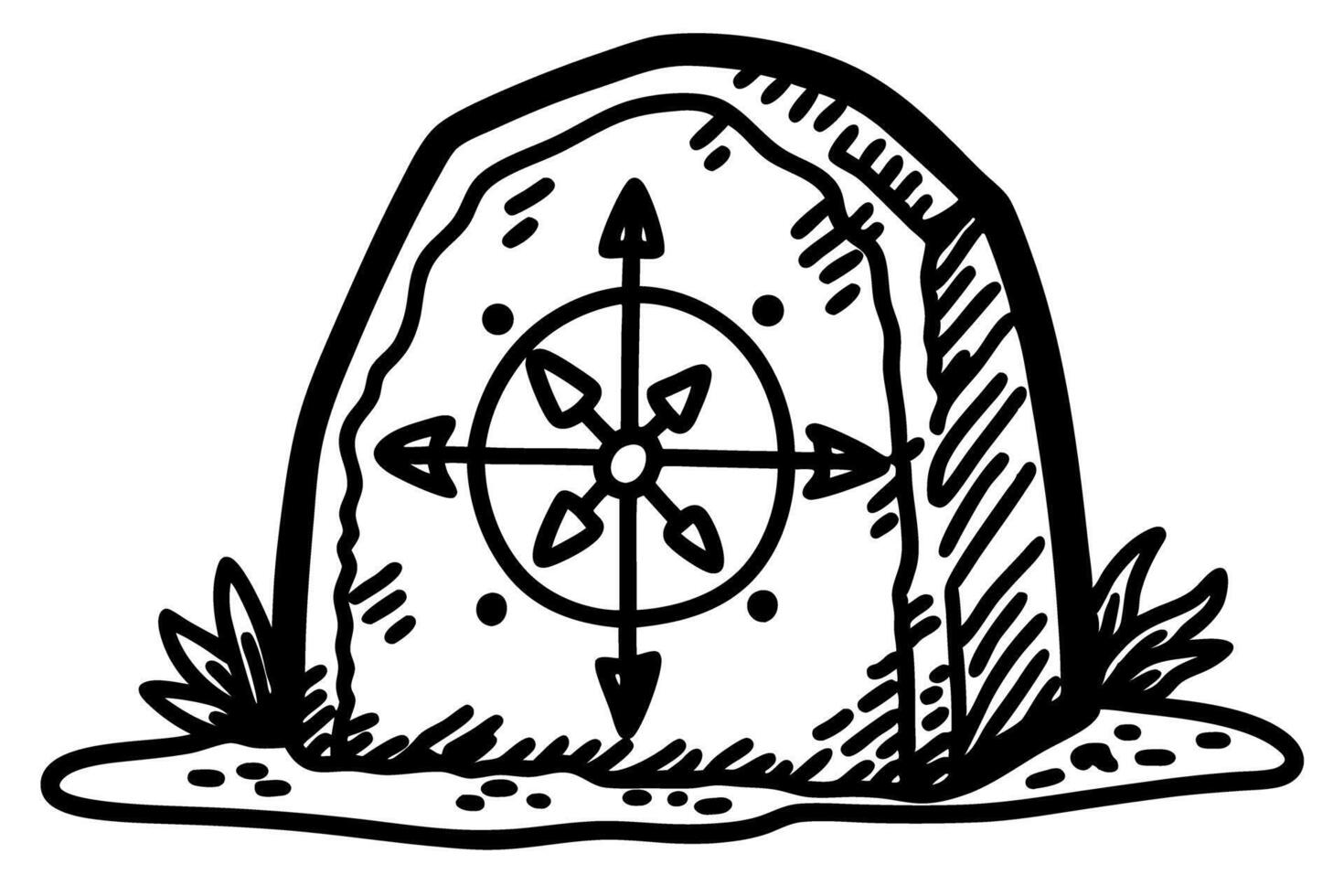 Ancient rune stone with arrow and cross symbol, mystical markings on weathered surface Pro Vector