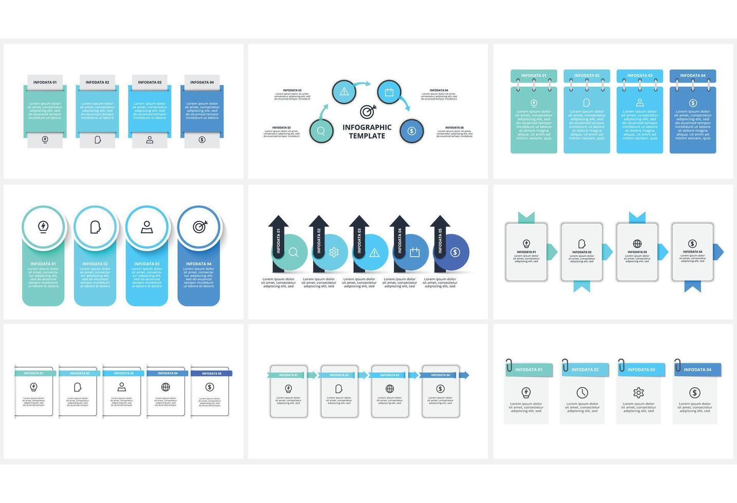 Set creative concept for infographic with 4, 5 steps, template for web. Pro Vector