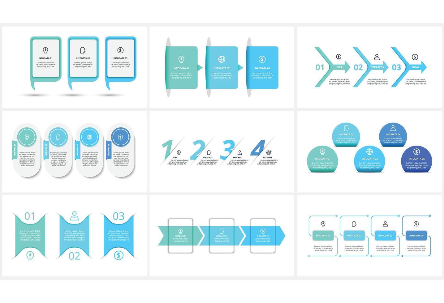 Workflow concept for infographic with 3, 4, 5 steps, options Pro Vector