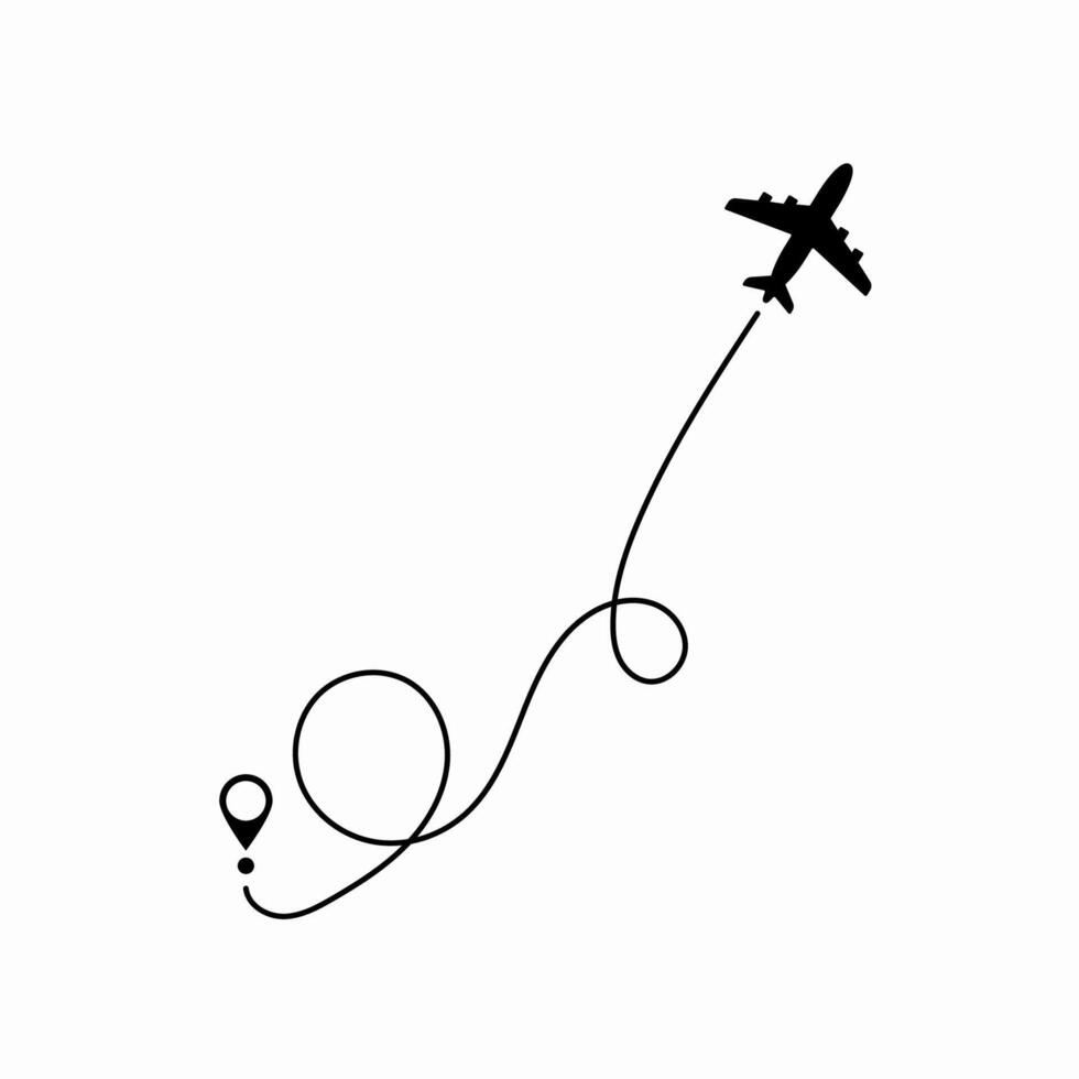 Airplane flying along a dashed trail symbolizing its travel route, representing journey mapping, flight tracking, and adventure planning for global explorers. Pro Vector