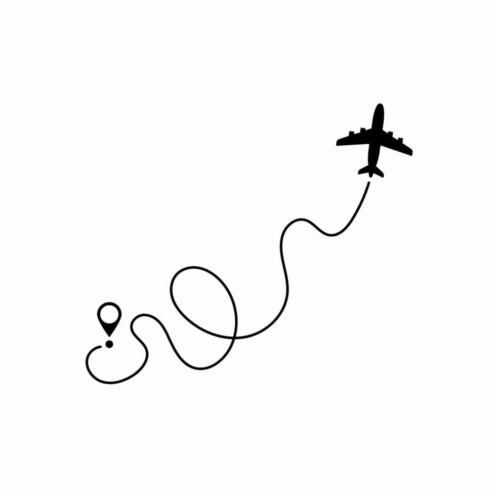 An airplane follows a dashed travel line, highlighting route direction and flight progress, symbolizing air navigation, trip planning, and flight tracking. Pro Vector