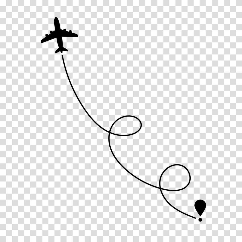 Plane following a dotted path illustrating its flight journey, useful for travel route visualization and flight tracking. vector