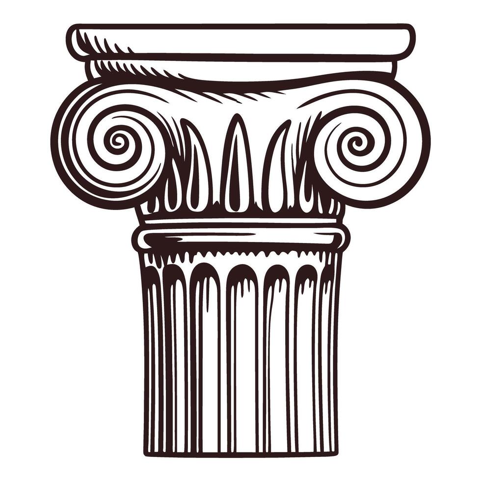 Classical ionic column capital design with scroll and acanthus leaf Pro Vector