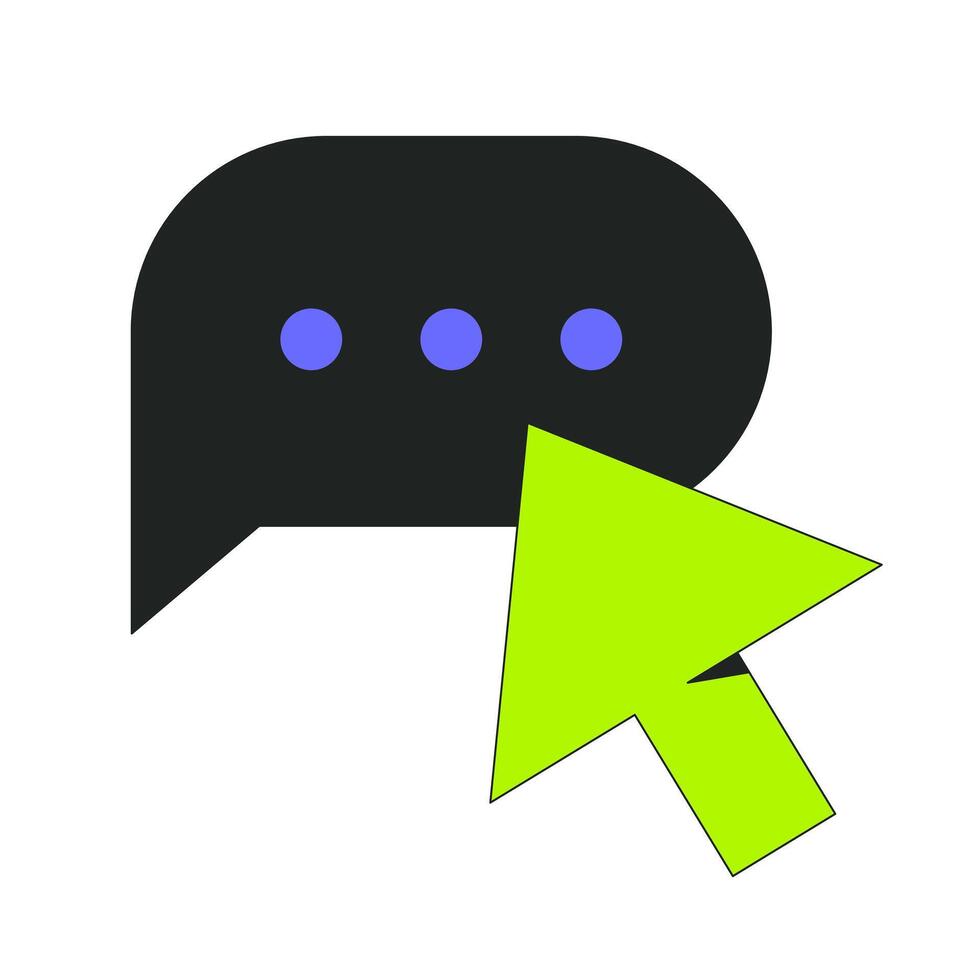 Chat bubble and click cursor 2D cartoon object. Online communication, digital interaction. Text message with arrow pointer isolated element flat clip art on white. Spot illustration Pro Vector