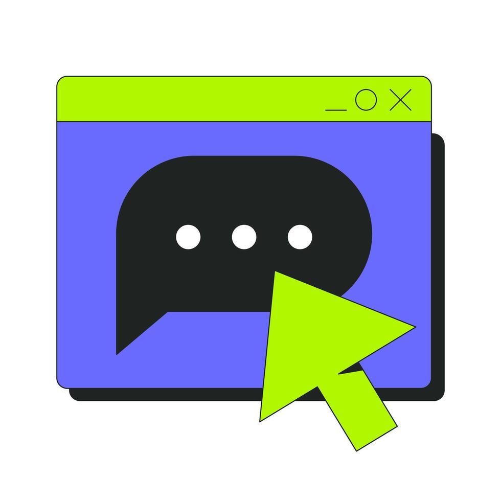 Online messaging 2D onboarding ui illustration. Chat browser window with cursor click. Customer support. Forum, remote communication cartoon concept isolated on white. Flat abstract metaphor Pro Vector