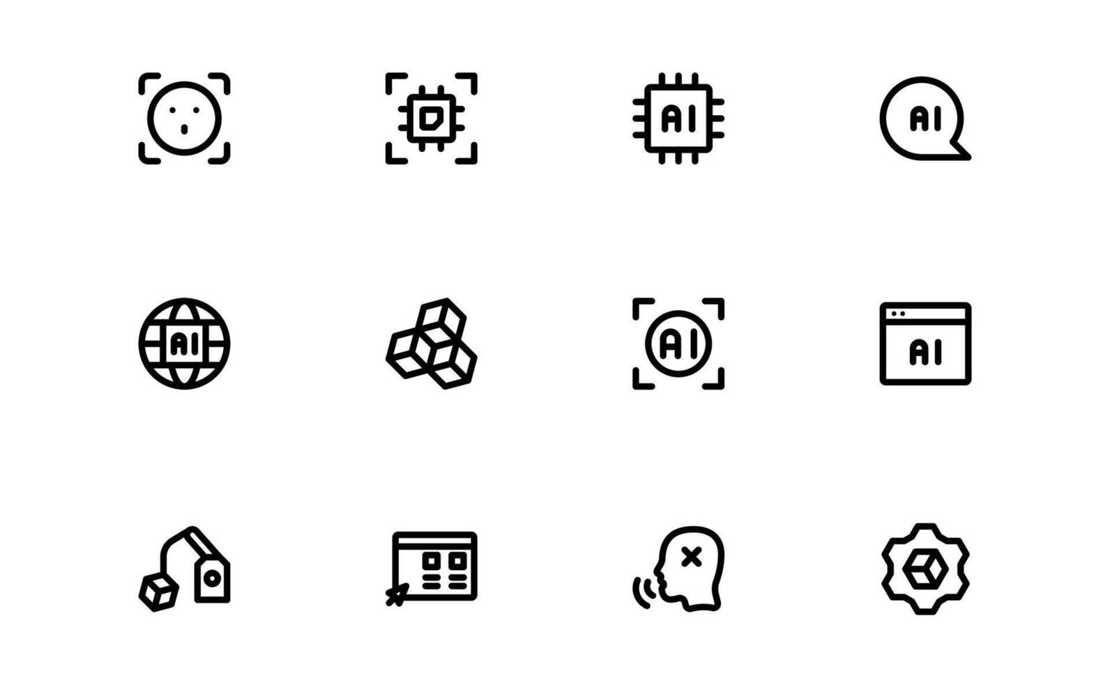 AI and Networking Icons set bundle. High-Quality Illustrations for Machine Learning, Cloud Networking, Data Security, and UI-UX Design Solutions Pro Vector