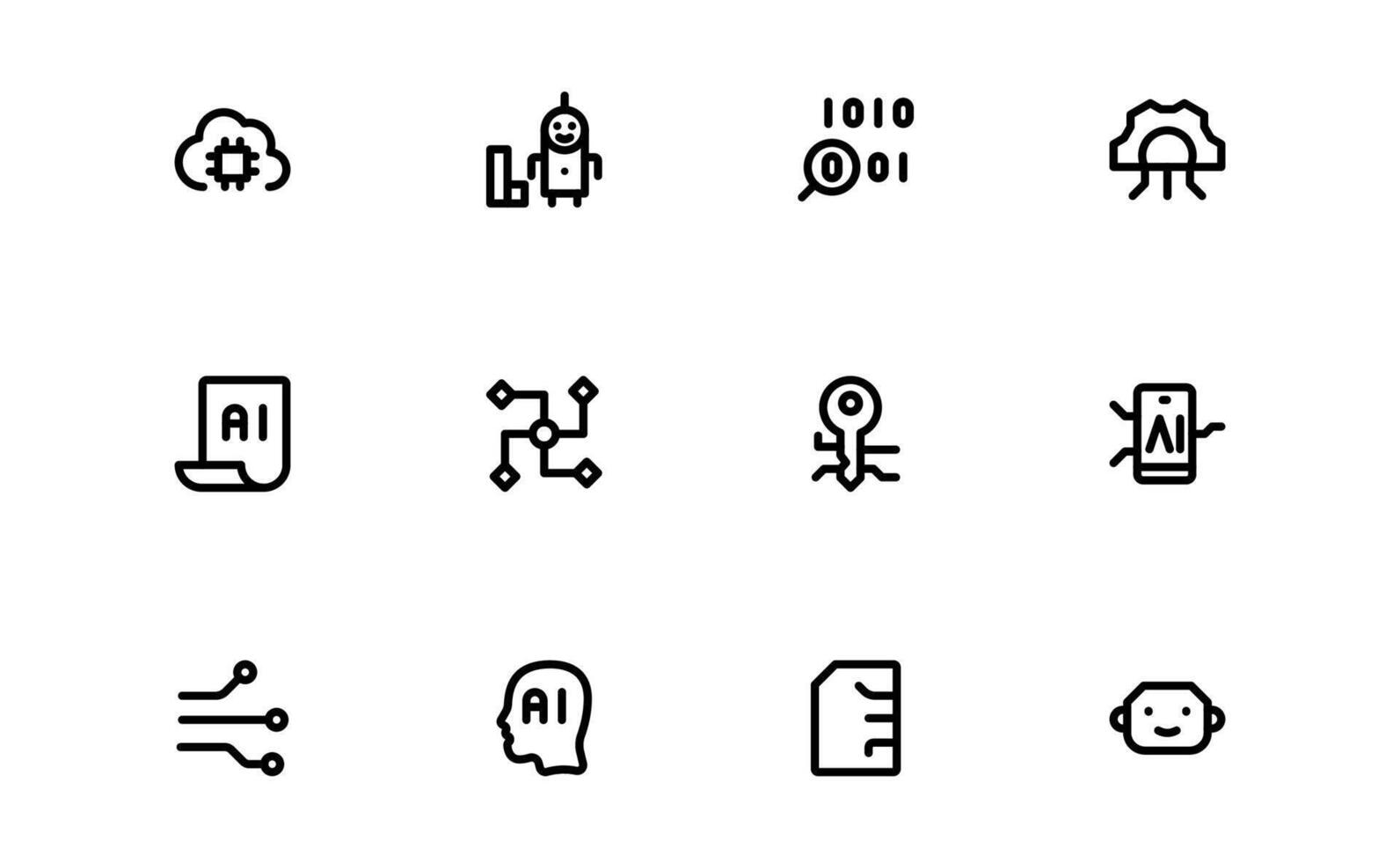 AI and Networking Icons set package. High-Quality Illustrations for Machine Learning, Cloud Networking, Data Security, and UI-UX Design Solutions Pro Vector