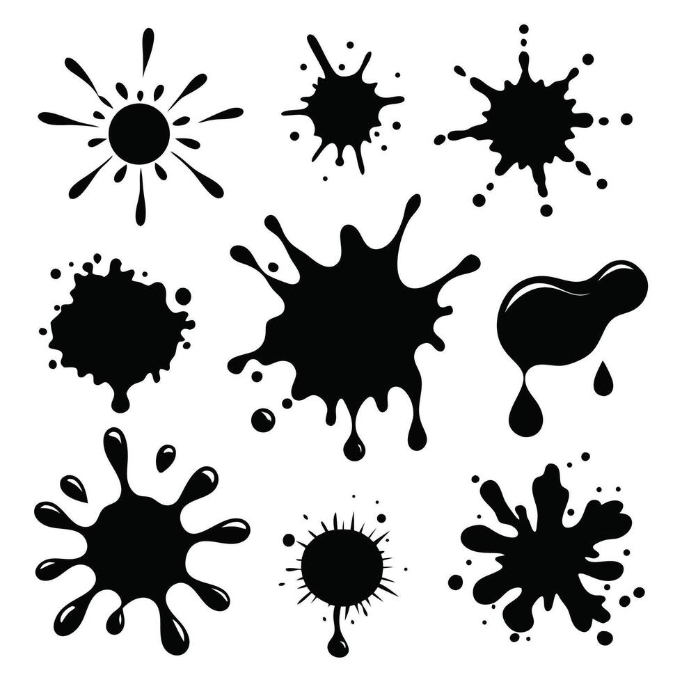 Black and White Splash Collection of 9 Unique High-Resolution Ink and Paint Elements for Graphic Design and Print vector