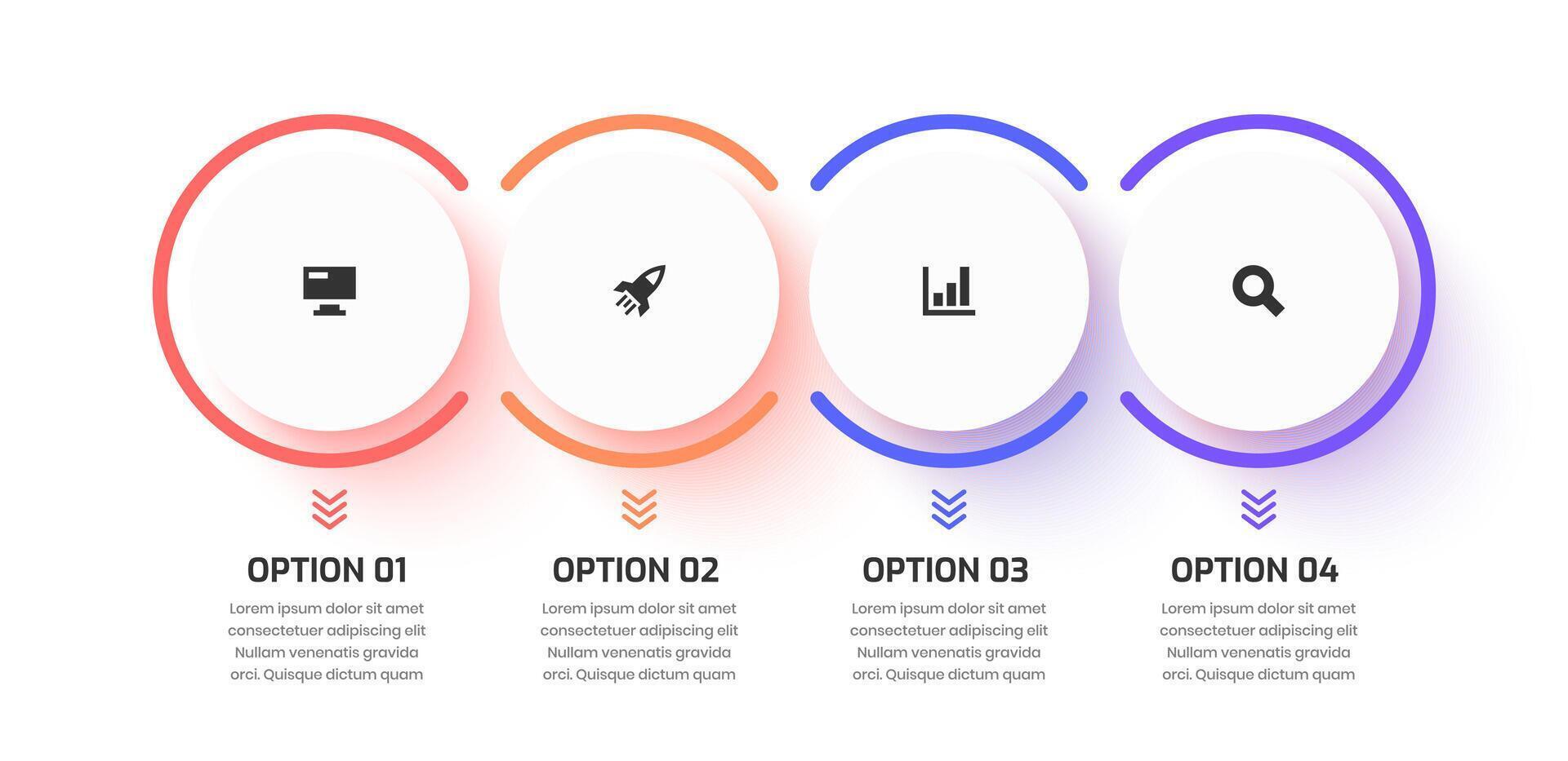 Infographic Design Element with Circle Label, Icon and 4 Option. Suitable for Workflow, Diagram, Chart, Presentation Pro Vector