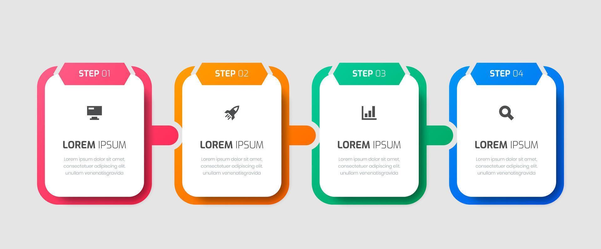Infographic Template with Rounded Rectangle Label, Icons, and 4 Steps for Presentation Pro Vector