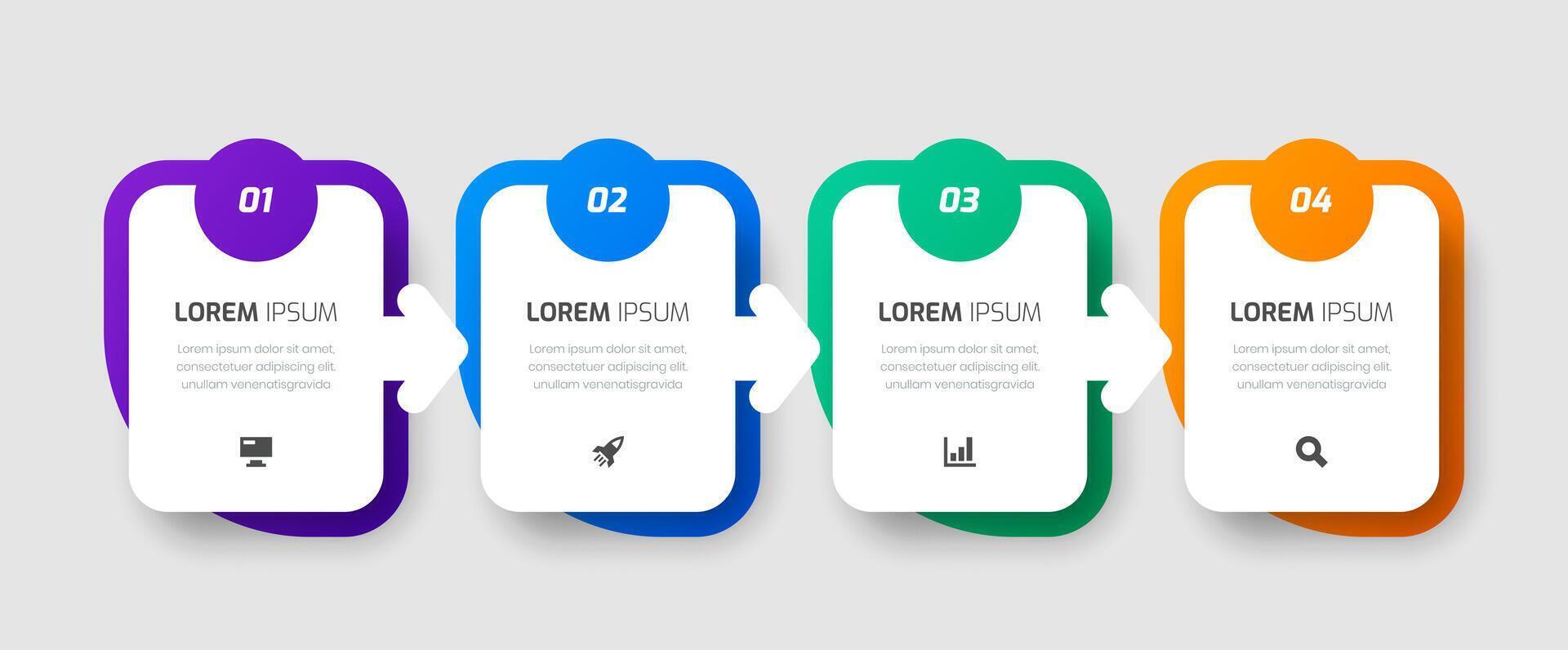 Infographic Template with Rounded Rectangle Label, Icons and 4 Numbers for Presentation Pro Vector