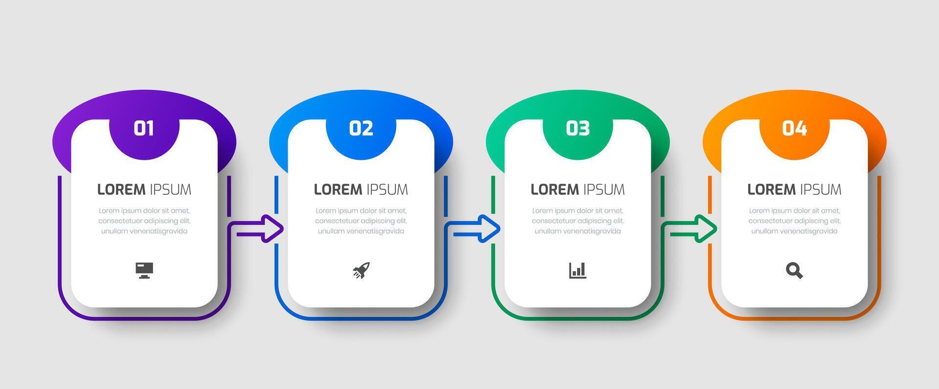 Infographic Template with Rounded Rectangle Label, Icons and 4 Numbers for Presentation, Diagram Pro Vector