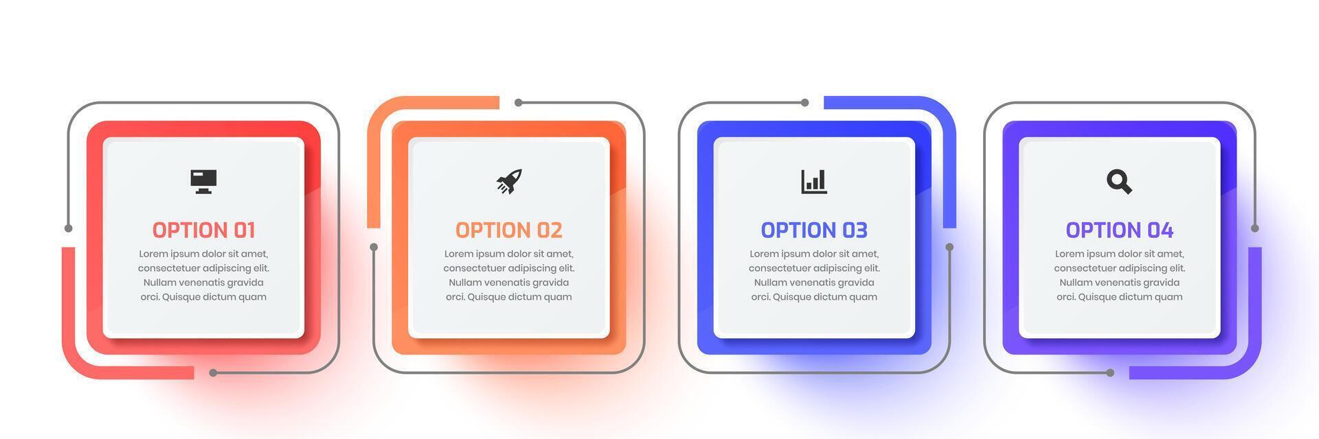Business Infographic Design with Square Label, Icon and 4 Option. Suitable for Workflow, Diagram, Presentation Pro Vector