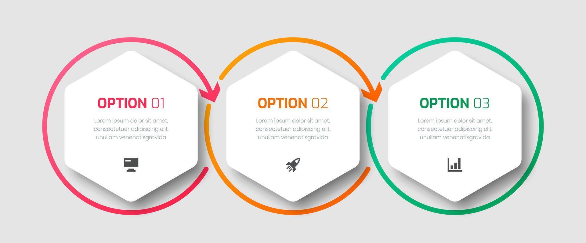 Timeline Infographic Template with Hexagon Label, Icons and 3 Options for Presentation Free Vector