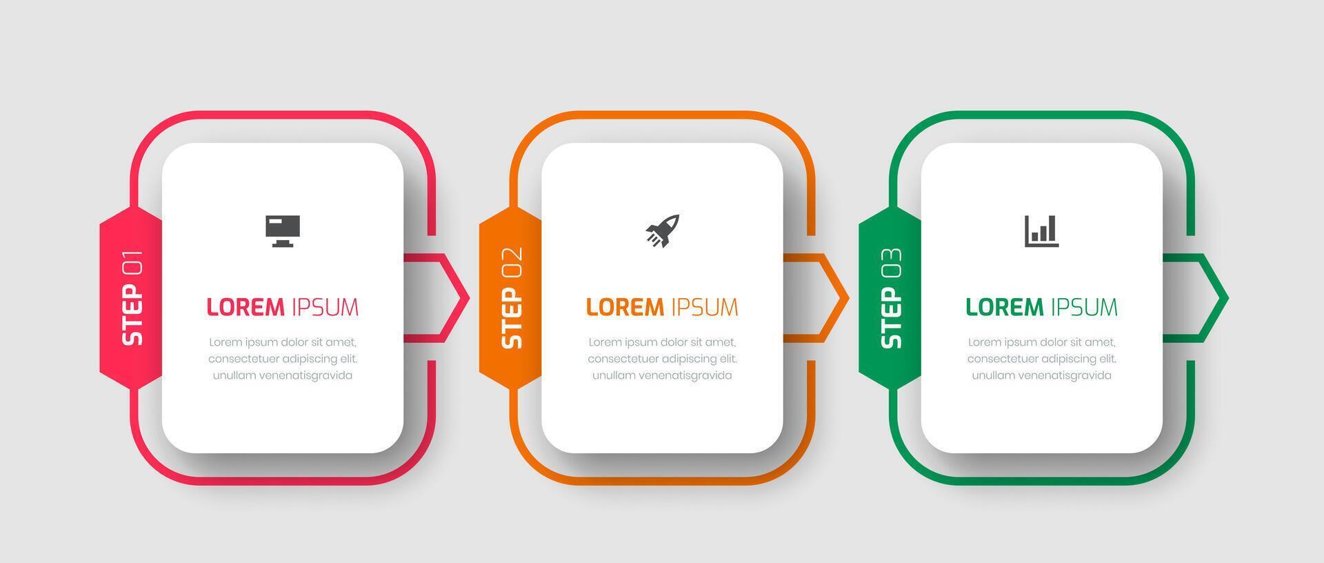 Business Infographic Template with Rectangle Label, Thin Line, Icons, and 3 Steps for Presentation Pro Vector