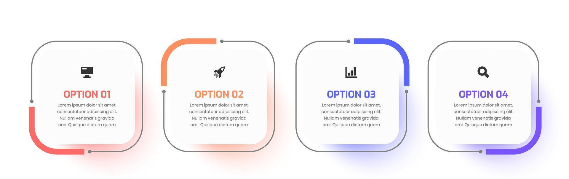 Business Infographic Design with Square Label, Icon and 4 Option. Suitable for Workflow, Diagram, Chart, Presentation Pro Vector