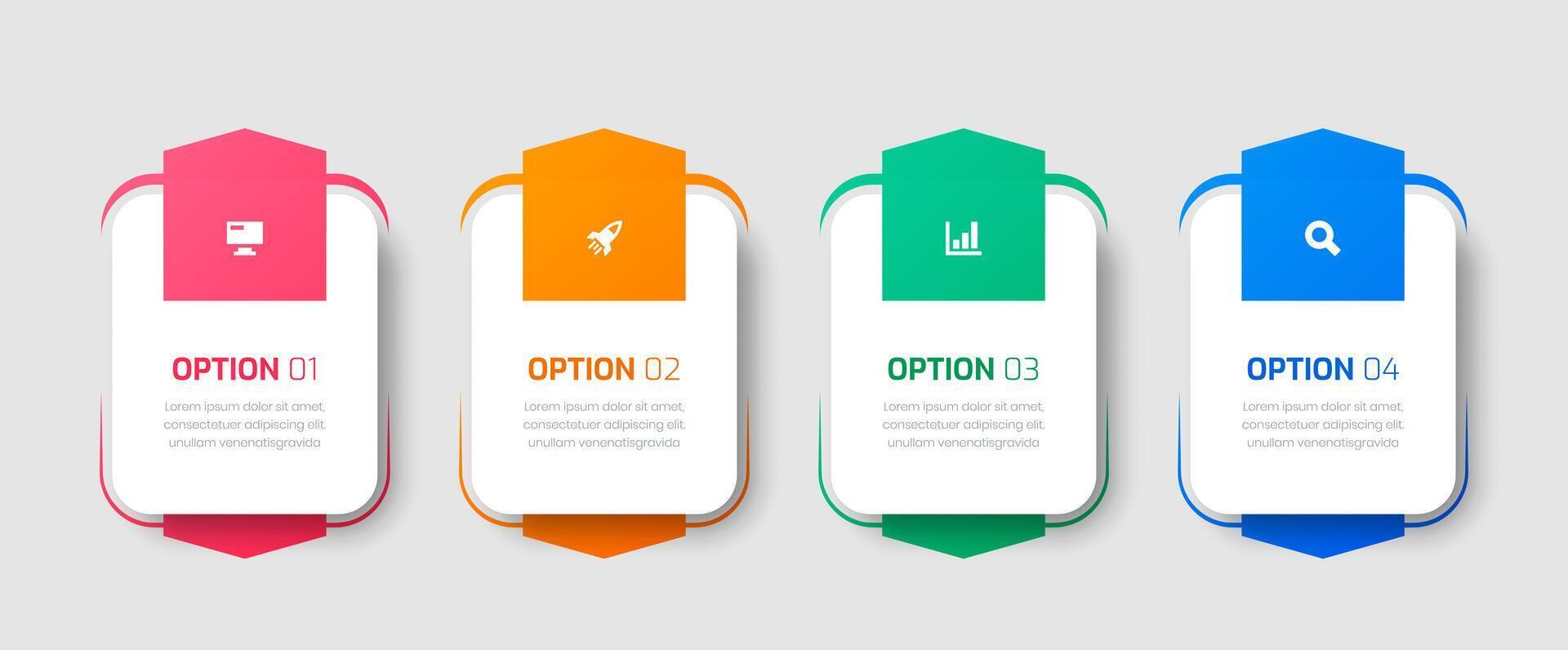 Infographic Business with Rounded Rectangle Label, Icon and 4 Options for Presentation Pro Vector
