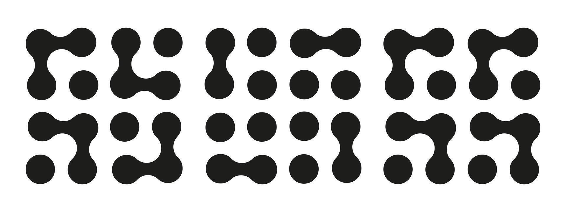 Set of Metaball icons. Connected dots sign. Integration symbols. Circles abstract patterns. Point movement. Connected blobs. Metaballs transition. Pro Vector