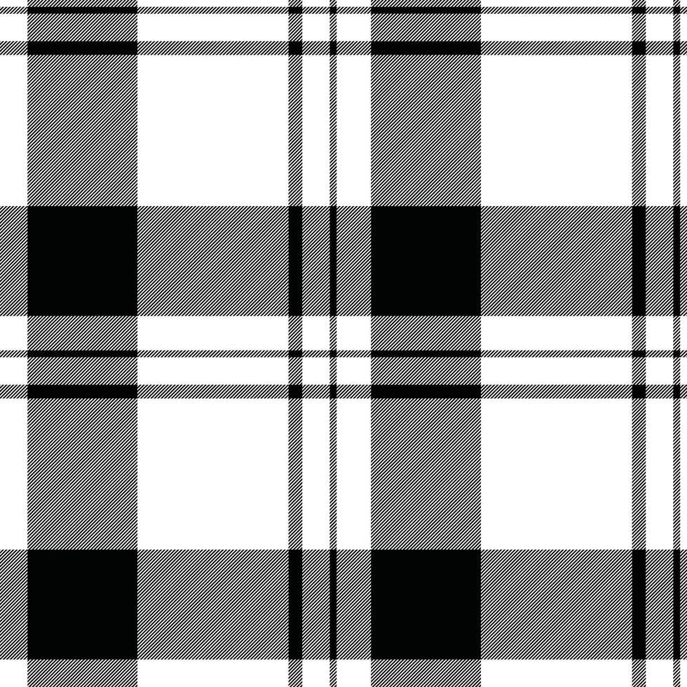 Classic plaid pattern. Black, white, and grey checks create a versatile design. Use for backgrounds, textiles, apparel, or graphic design projects. Traditional, timeless appeal. Pro Vector
