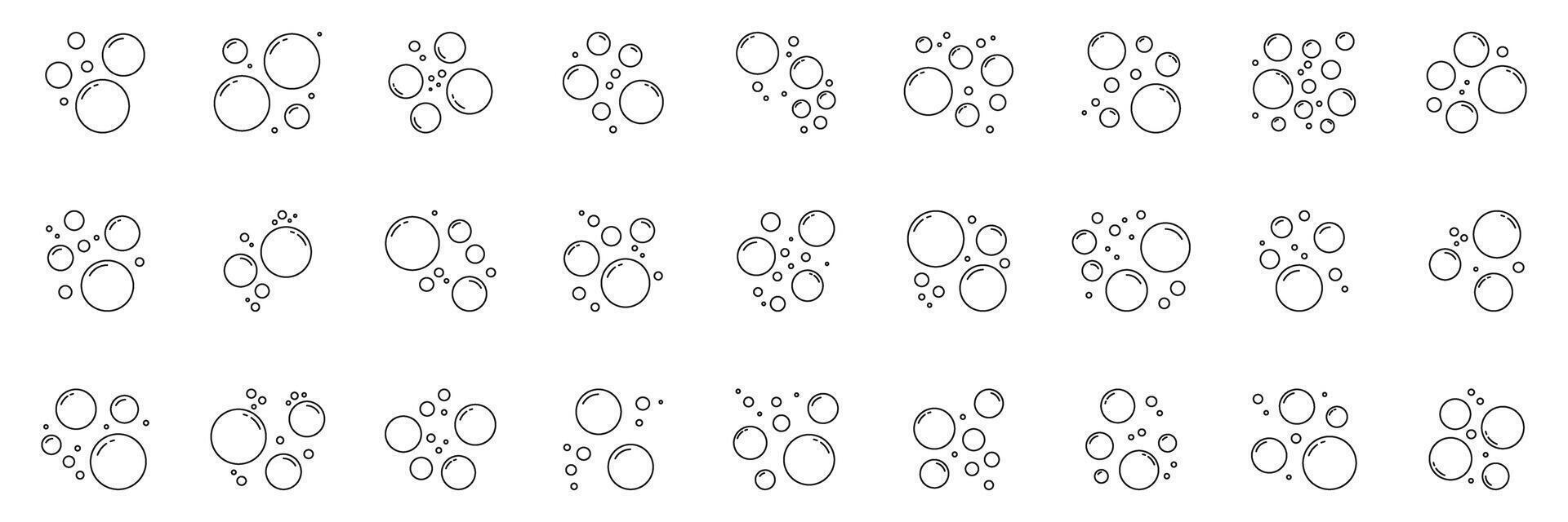 Soap Bubbles Line Icon Set. Variety Of Soapy Floating Air Bubbles With Reflective Highlights Outline Symbol Collection. Editable Stroke. Isolated Illustration Pro Vector