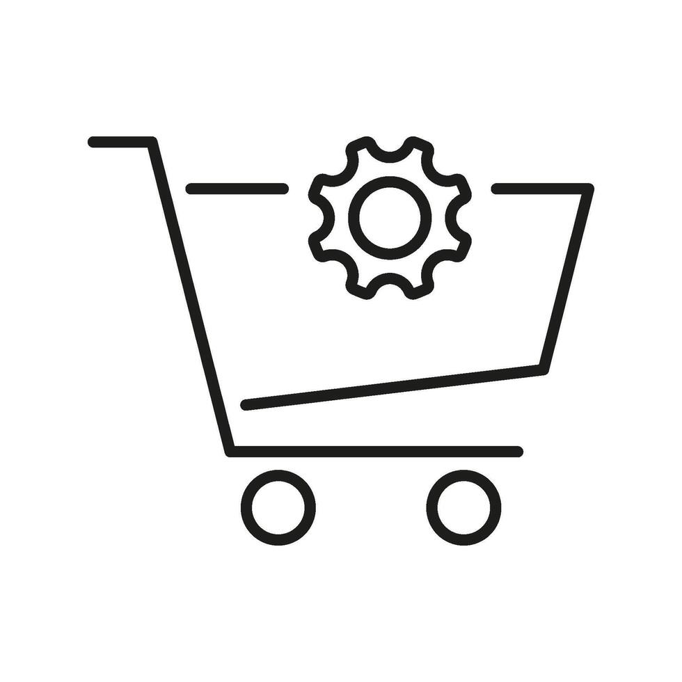 Shopping Cart With Gear Line Icon. E-Commerce Optimization And Retail Management Outline Symbol. Online Shopping Efficiency And System Configuration. Editable Stroke. Isolated Illustration Pro Vector