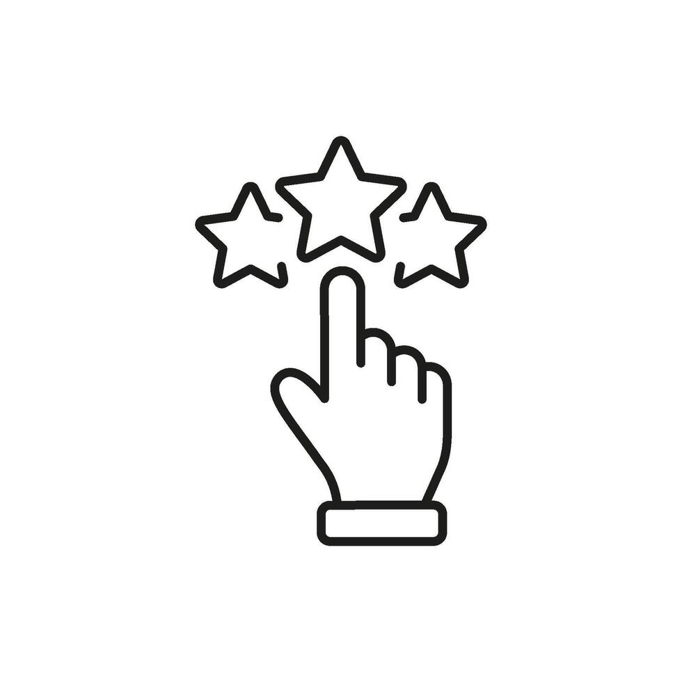 Hand Selecting Star Rating Line Icon. Customer Feedback, Review, And Satisfaction Evaluation Outline Symbol. Quality Assessment And User Experience. Editable Stroke. Isolated Illustration Pro Vector