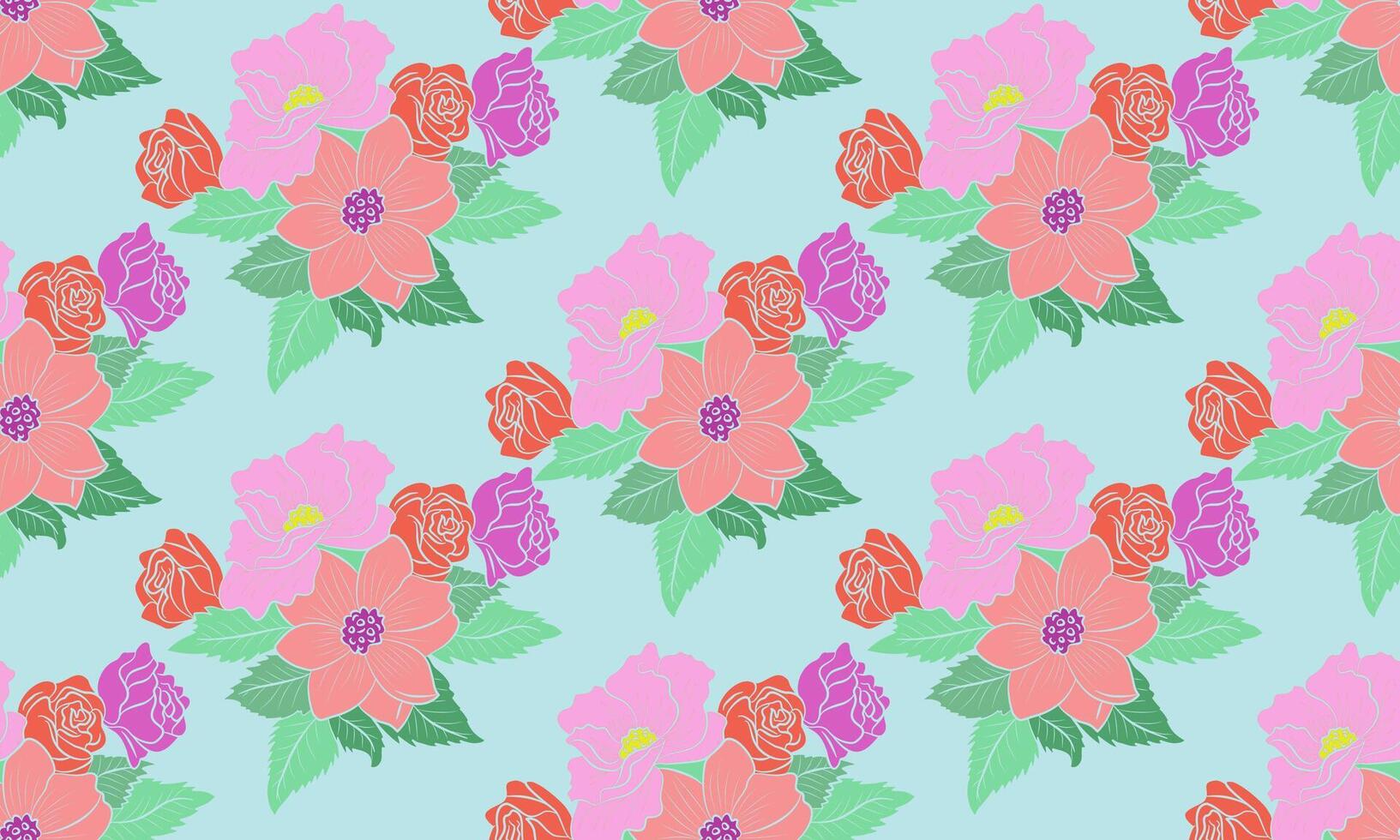 a pattern composed of pink and roses flower with light blue background , design for fabric or various pattern printing works. Pro Vector