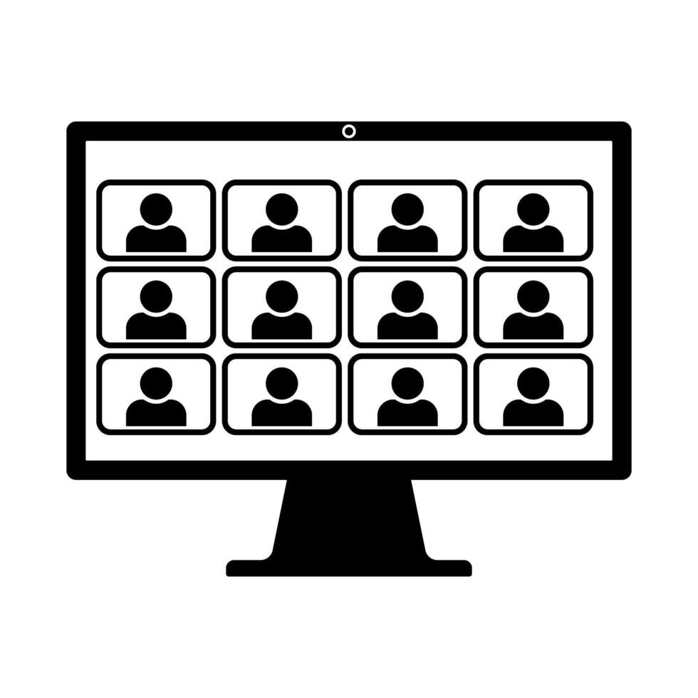 Icon of a conference displaying multiple users attending online meeting on computer screen Pro Vector