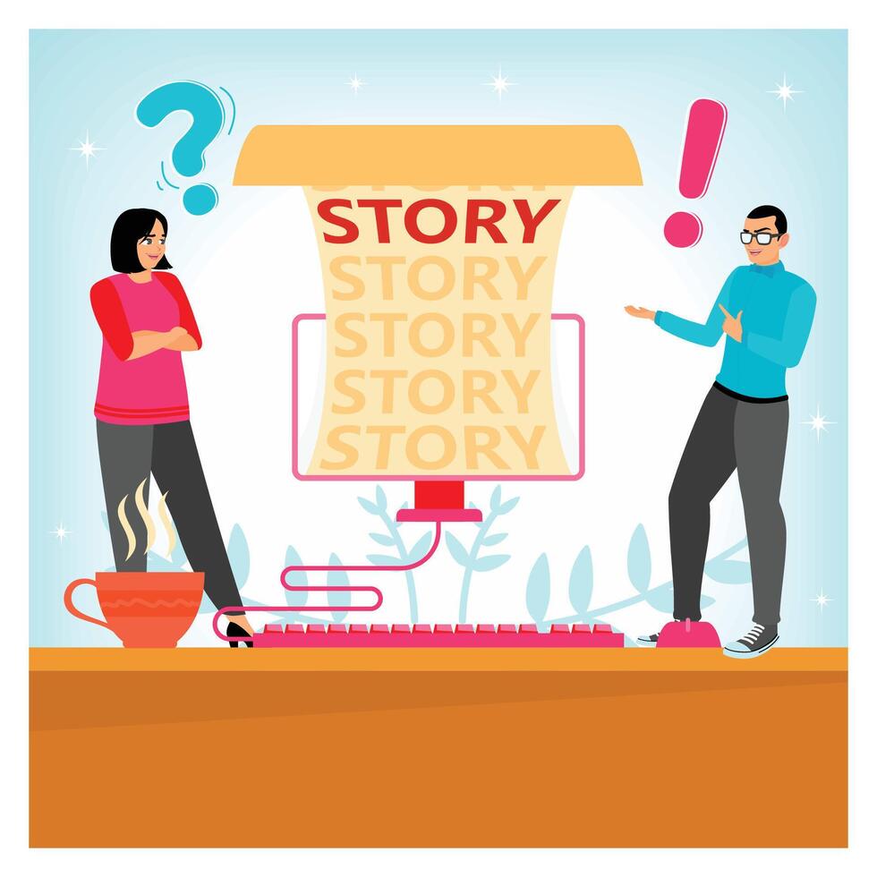 Creative Team Discussing Ideas Around Storytelling on a Computer Screen. Pro Vector