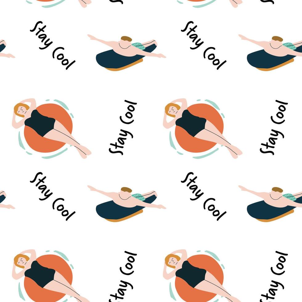 Summer pattern with floating females and stay cool text Pro Vector