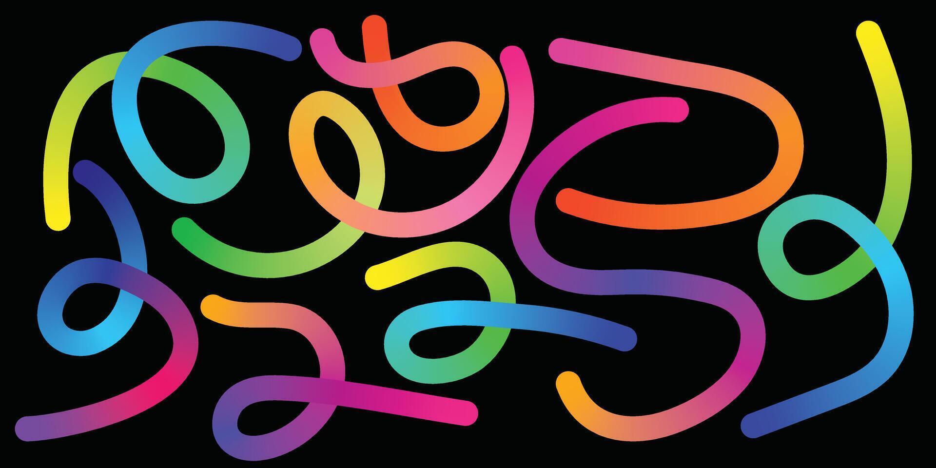 Wavy Gradient Ribbon Lines Rainbow Abstract Art. Curvy Rainbow Line Pattern Gradient Abstract Flow Shapes Pro Vector