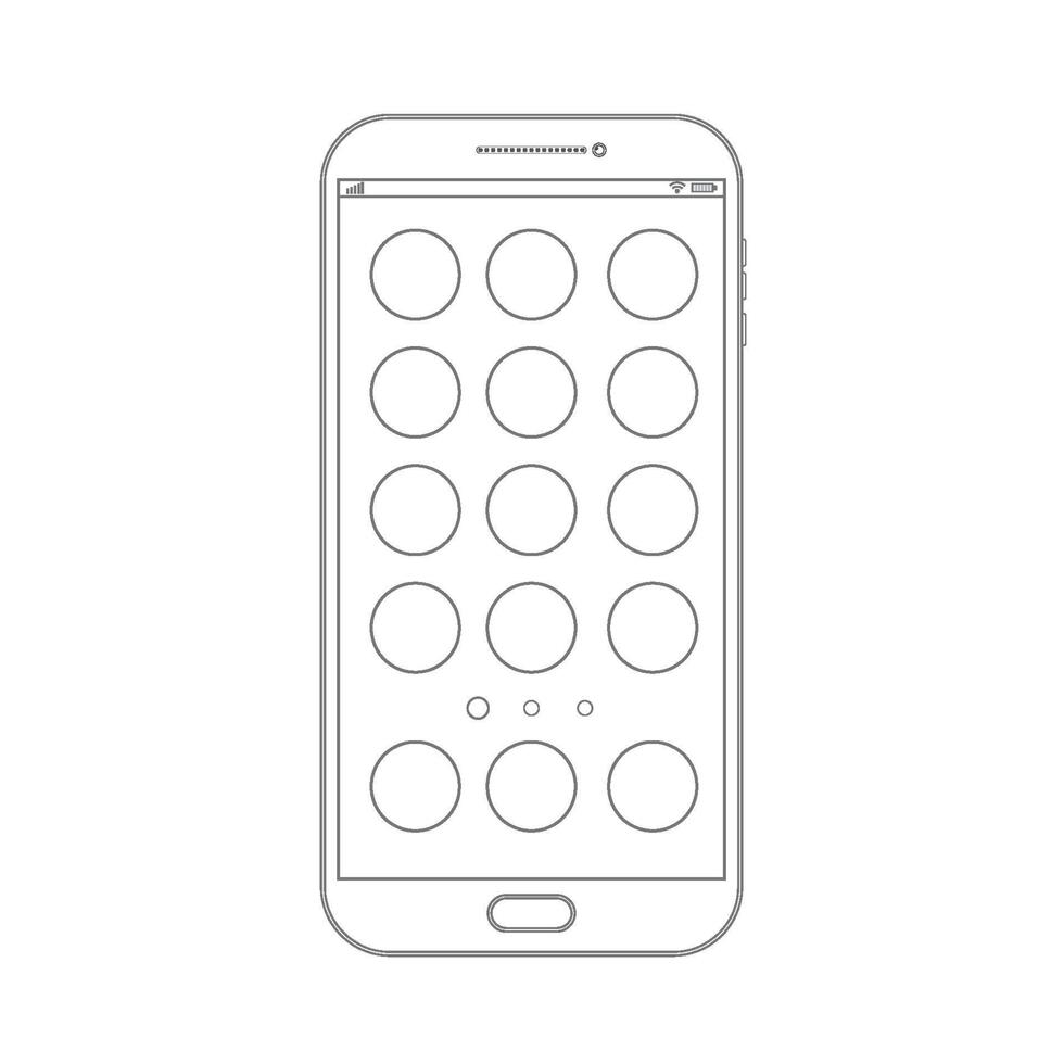 Outline drawing smartphone with blank icons. Elegant thin line style design. Vector smartphone with UI icons. Pro Vector