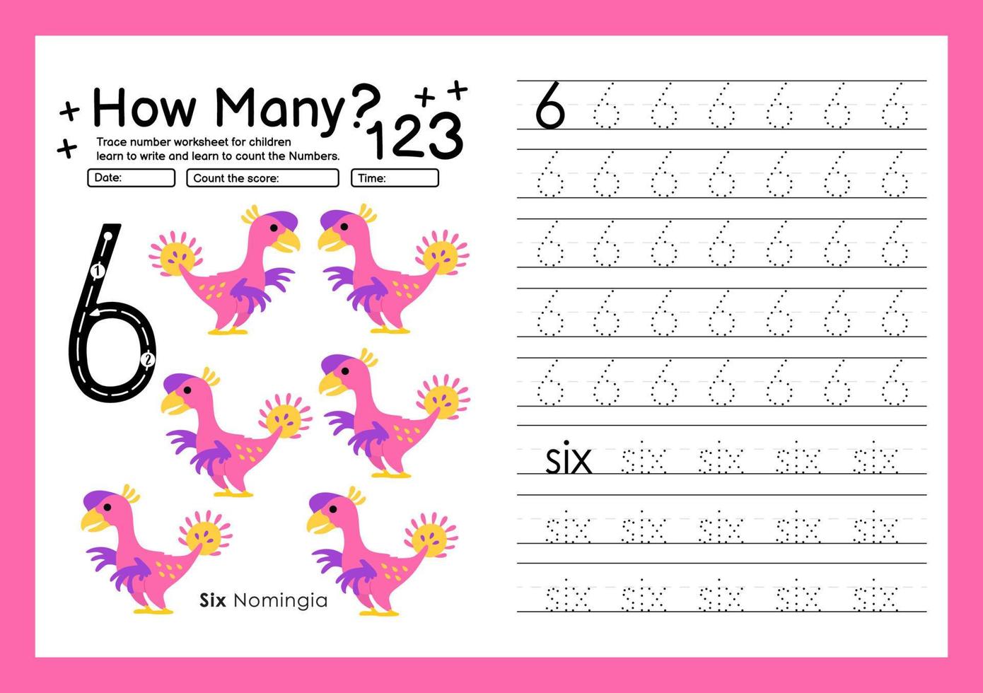 Numbers tracing template by counting Dinosaur with Number six Pro Vector
