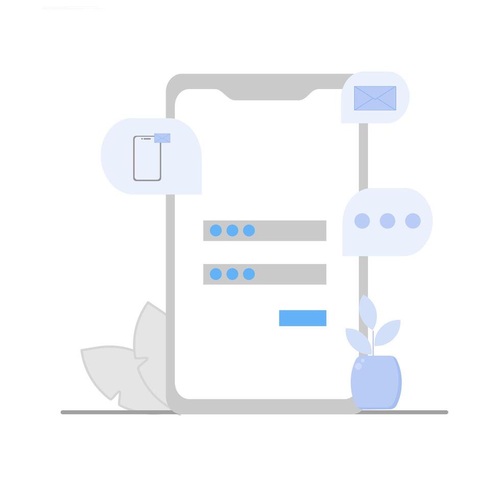 Illustration of registering using email, prepaid mobile phone number and linking using social media. concept of registration and login Pro Vector