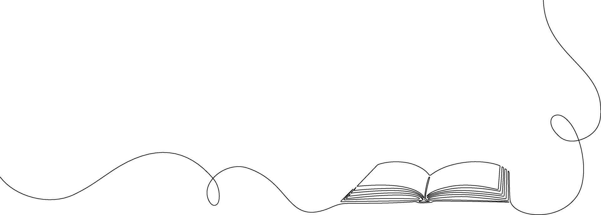 Opened book with glowing light bulb and pen in one continuous line. Symbol of education, reading and writing in one line style. Editable outline illustration Pro Vector